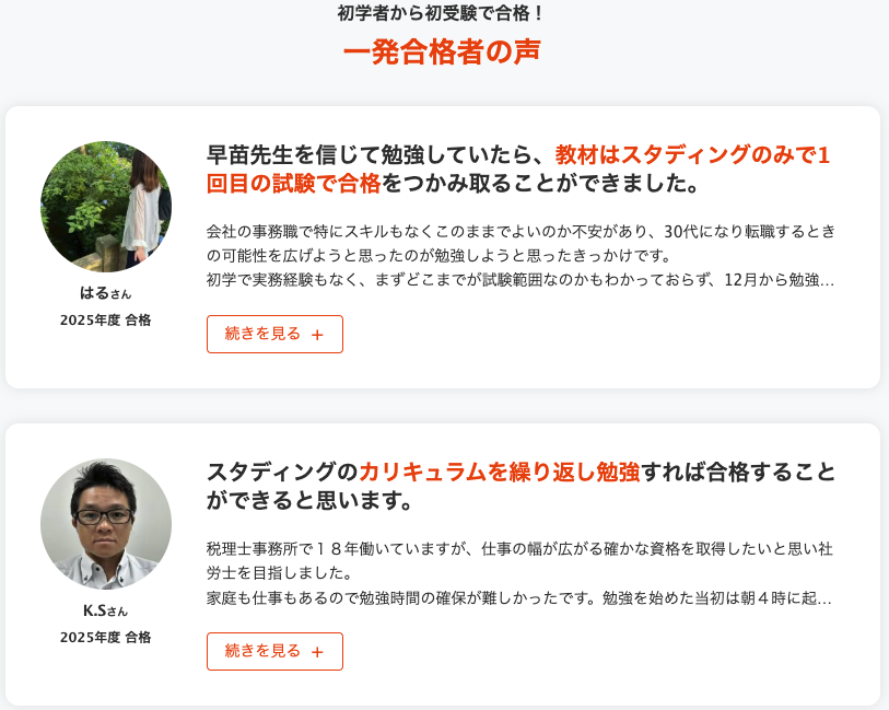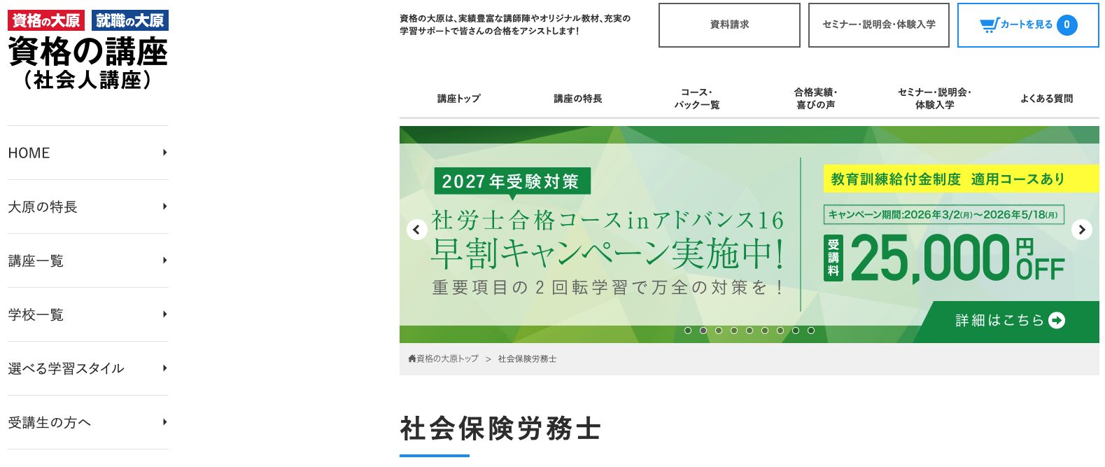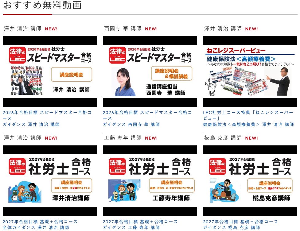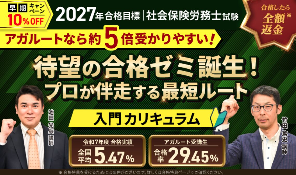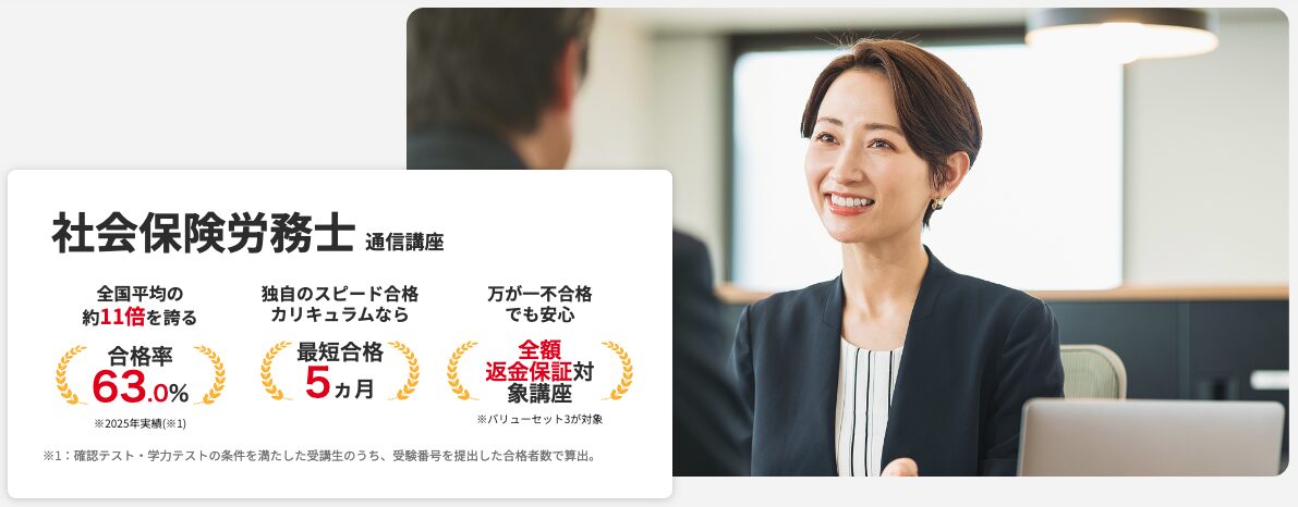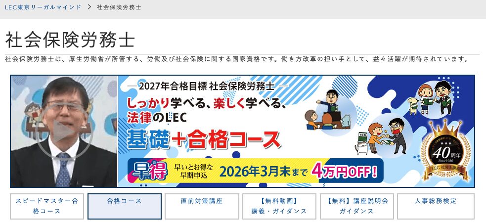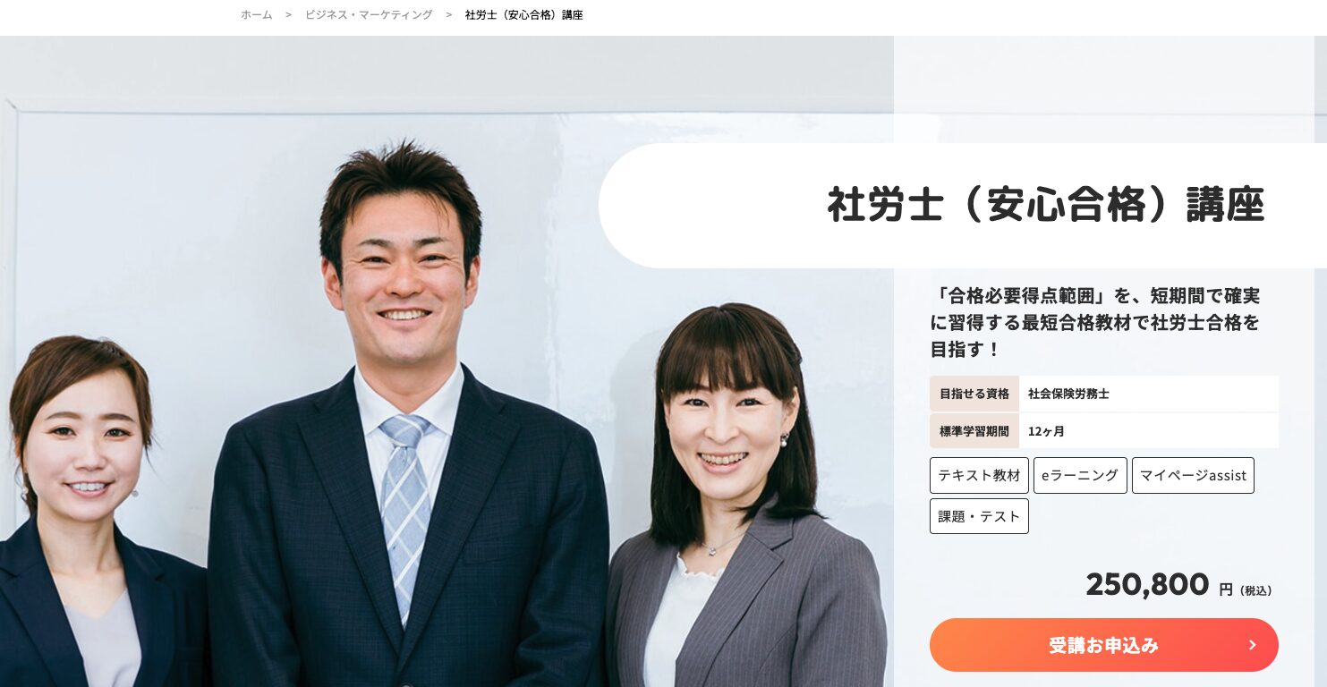 | コース・料金 | 【2027年合格目標】 社労士(安心合格)講座:250,800円 |