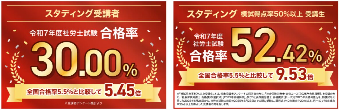 合格実績は社労士通信講座選びの最重要指標と言って良いでしょう。