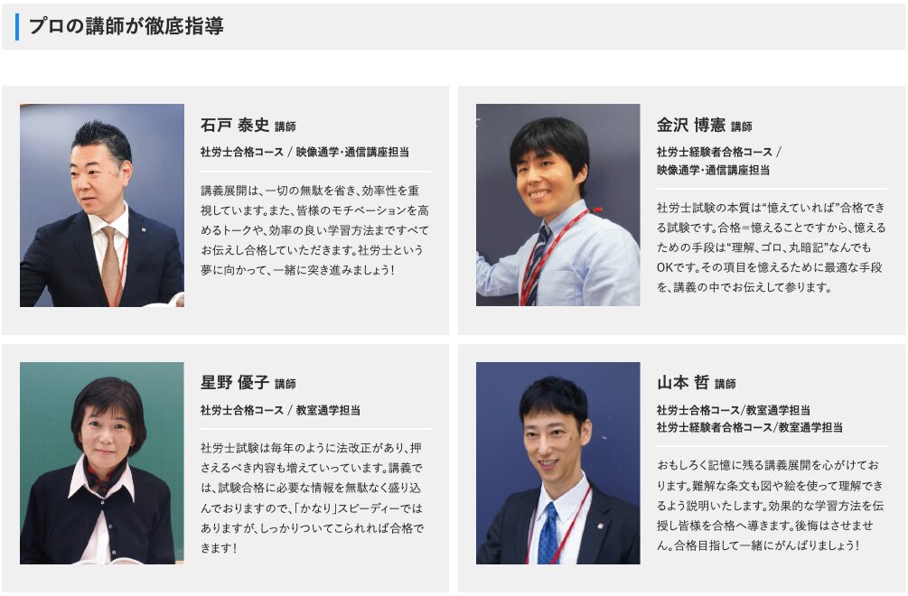 - 質問や学習フォローも充実しており、難しい社労士試験でも途中で挫折しにくい