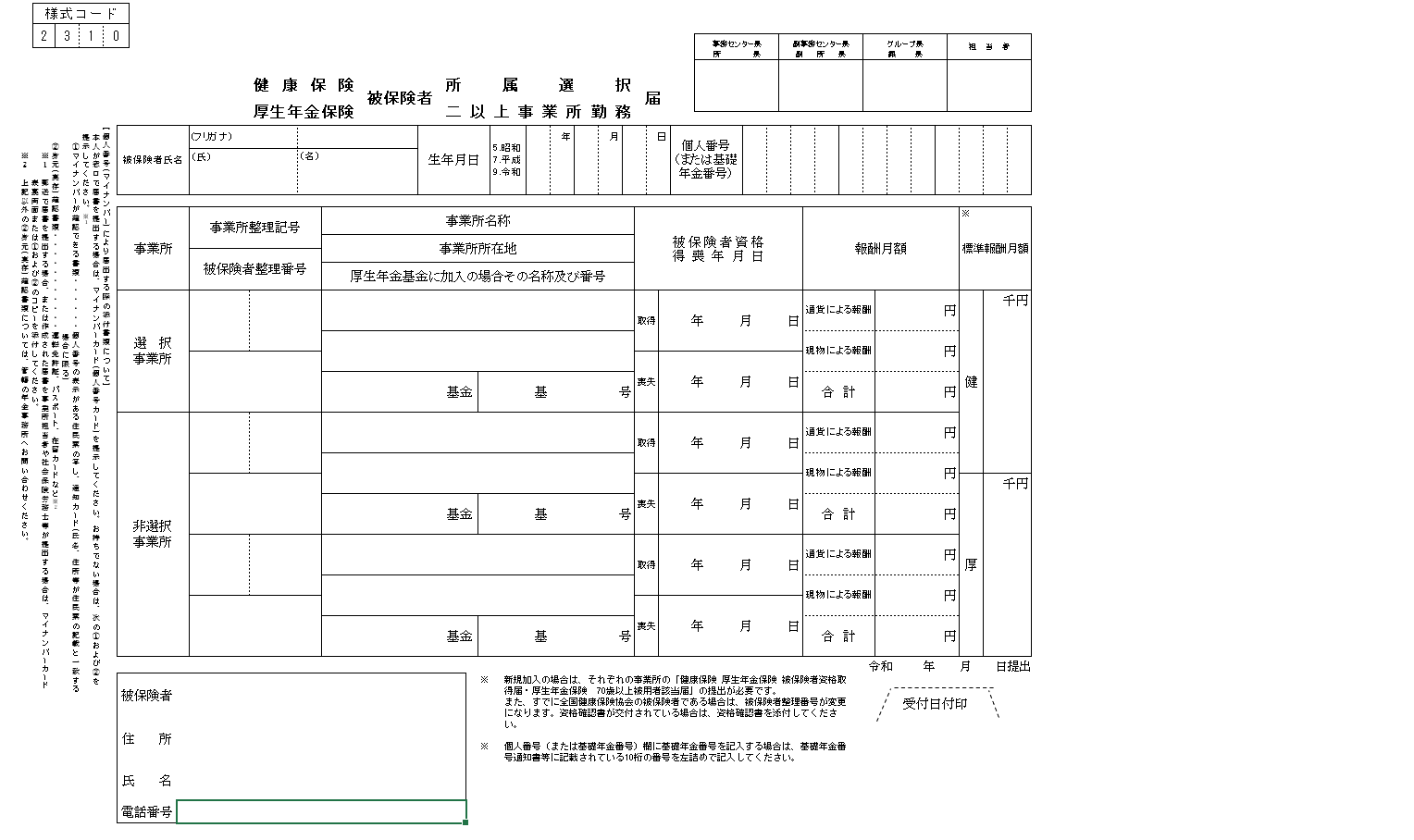 参考:日本年金機構 健康保険・厚生年金保険 被保険者所属選択/二以上事業所勤務届(エクセル)