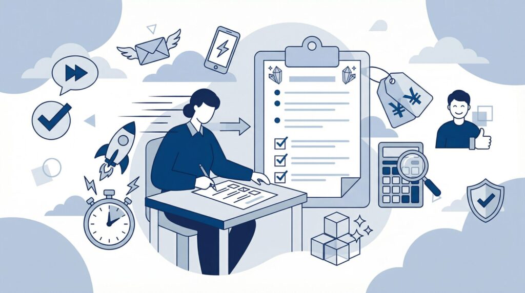 文字数やページ数に応じた明確な見積もり提示。急ぎの案件もチャット等でスムーズに対応。