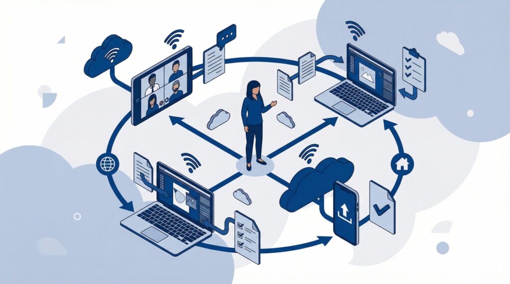 訪問や対面面談は不要。Zoom、Slack等で、全国どこからでも就業規則の見直しがスムーズに完結。契約もクラウドサインで即締結。