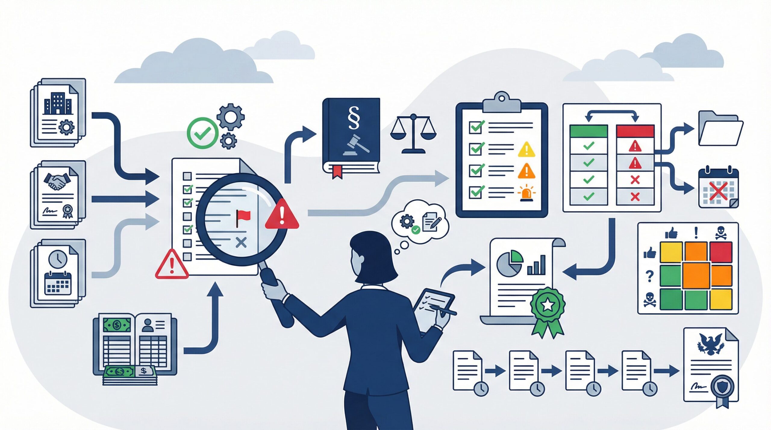 検出されたリスクを報告し、ディールを進めるか、価格を下げるか、契約条項で手当てするかを決定します。