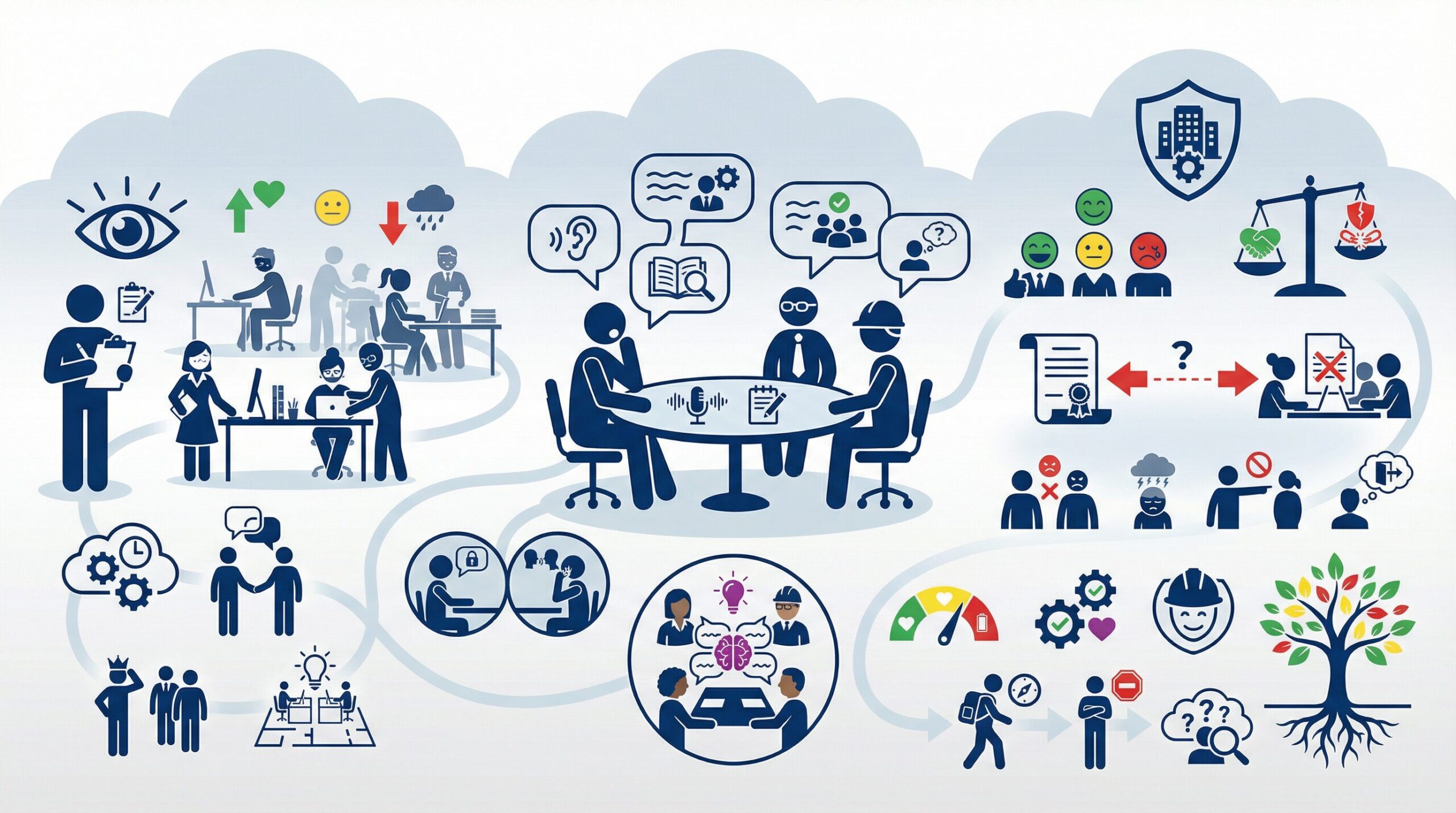 資料だけでは見えない実態(「残業は自己申告か」「ハラスメントの噂はないか」等)を、人事担当役員や実務責任者にヒアリングします。